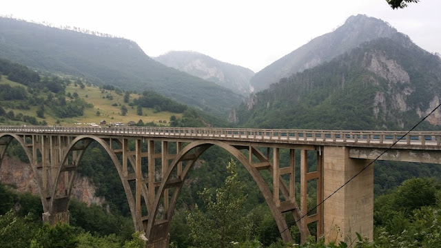 Вече нямах търпение да стигнем в хотела като си мечтаех за един горещ душ. През канйона и моста на Тара така и така щяхме да минем та искаме не искаме щяхме да го видим. Предният път като идвахме по тези места пак случихме на кофти време и дъжд, та нямаше да е нещо ново и необичайно! Комай в Жабляк съм идвал три пъти и трите ме вали... Иначе влизайки в Черна гора определено нямаше как да ми убегне, че пътят стана по-читав, всичко беше по-чисто и подредено някак. Едни самотни къщички алпийски стил накацали по всевъзможни баири, та чак свят да ти се извие да гледаш! Не знам на тея козите им дали пасат на ръчна или просто не гледат кози, щото нали - няма кози, няма проблем. На доста места край пътя имаше двусмислените надписи „Кока яя“. Викам си тук по тези земи явно коката се продава като топъл хляб, па и явно имат някакъв странен обичай да я употребяват с яйца щото все в комплект ги срещахме двете да се предлагат...